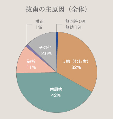 40歳を過ぎると、歯周病が抜歯の原因の第1位です。